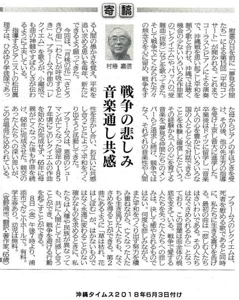 そして戦争の悲惨さと平和への強い願いをともに新たに持つ機会となりました。 - 演奏会の感想が寄せられました