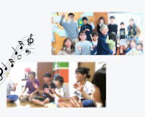 この教室独自のクラスで、歌やコーラス・身体表現・自由表現をとおして、子どもたちの音楽的感性が育ち、それだけでなく、創造性や社会性、思考力、想像力、他者との共感性など、人として大事な、様々な能力が育っていくように目指し、それぞれの子どもたちに働きかけます。